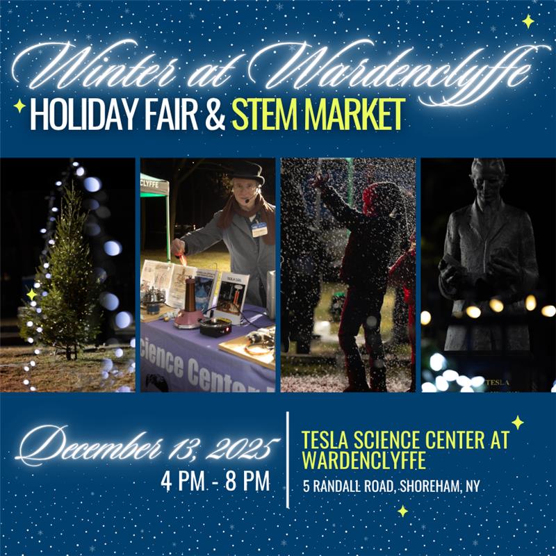 Our Winter at Wardenclyffe Holiday Fair and STEM Market will take place on December 13th on the historic grounds of Nikola Tesla’s last laboratory. Bring the whole family for an evening of shopping, entertainment, and community celebration.