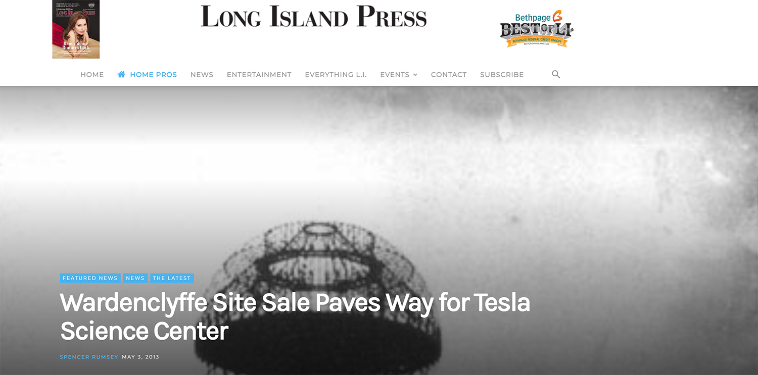 Riverhead News Review Reports on American Physical Society Naming Wardenclyffe….