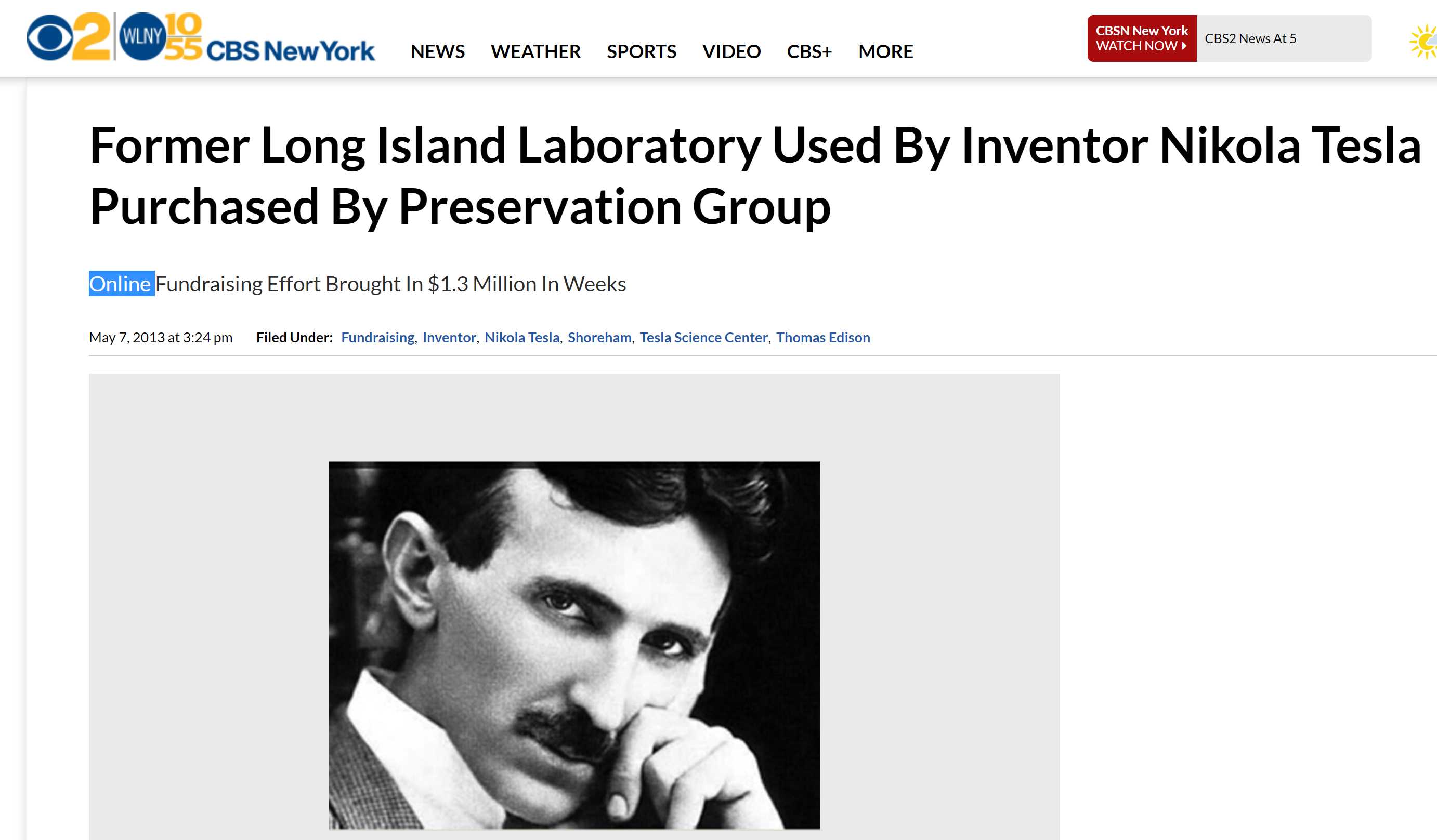 CBS News Reports on the Purchase of Nikola Tesla’s Wardenclyffe….