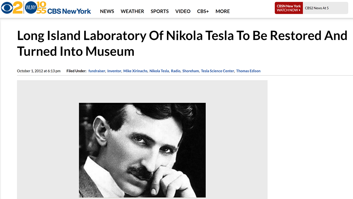 CBS News Reports on Plans to Restore Nikola Tesla’s Historic….