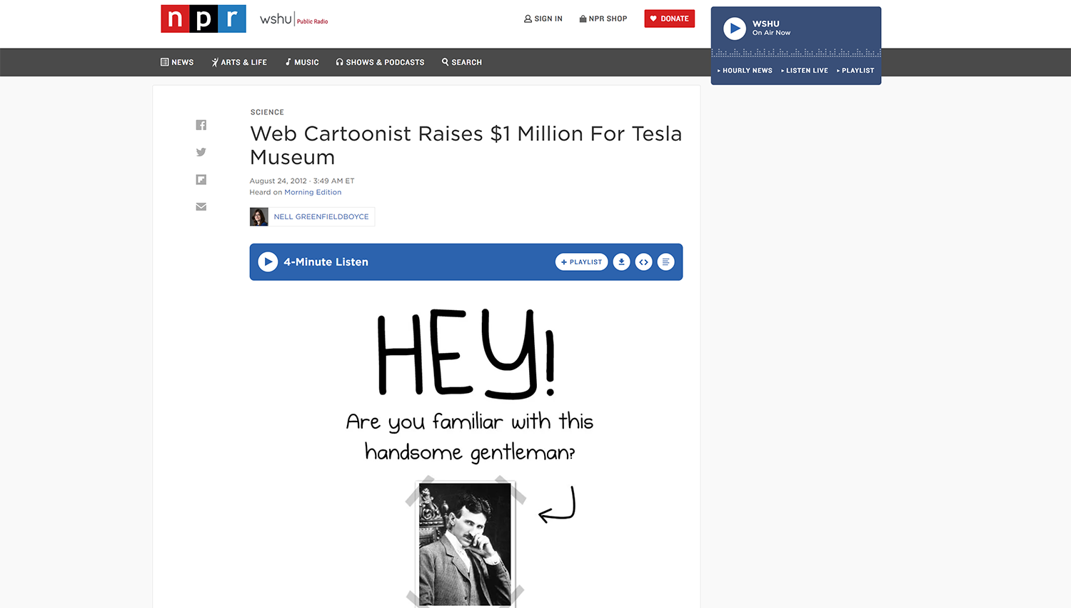 PR Web Report – Tesla Science Center at Wardenclyffe received….