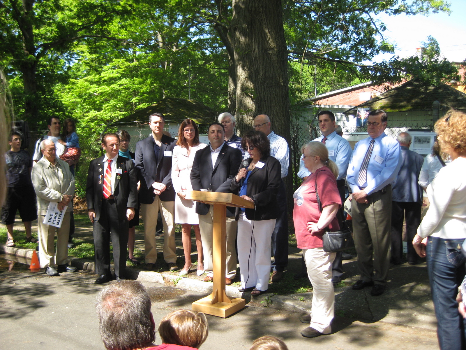 TSC President Jane Alcorn introduces the speakers at the rally.
