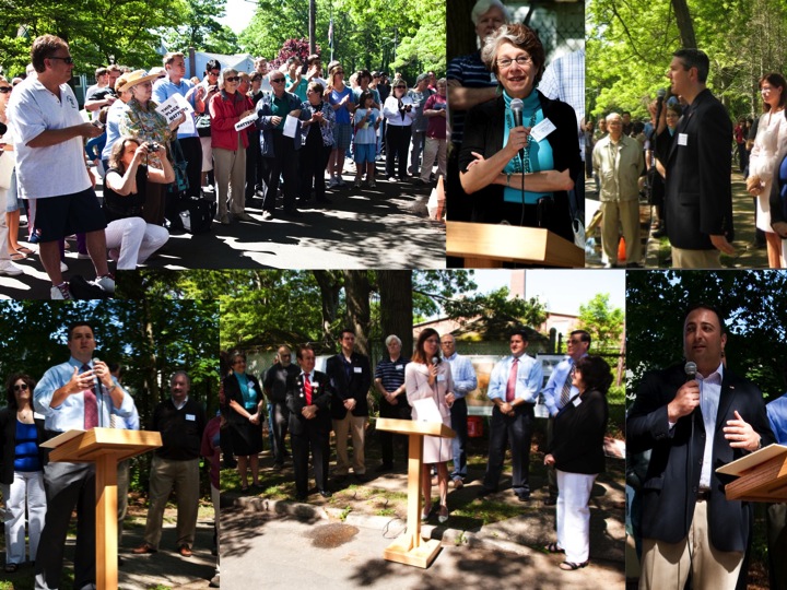 Elected Officials and community leaders gather to express support for Tesla site preservation.
